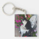 Tuxedo Cat Cute with Pretty Flowers Black Cats Key Ring