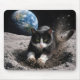 Tuxedo Cat Digging a Moon Crater Mouse Mat