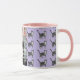Tuxedo Cat Funny Happy Dance Birthday Mug Tabbies in a Purple Background. A photo and floral design. A must for any cat lover!