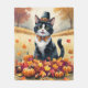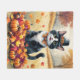 Tuxedo Cat In Autumn Leaves Thanksgiving Art Fleece Blanket
