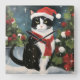 Tuxedo Cat in Snow Christmas Square Wall Clock