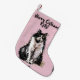 Tuxedo Cat Merry Catsmus Pink Christmas Stocking, with a fully customizable name. A glorious cat design. Designed from my original ink drawings.