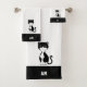 Tuxedo Cat & Monogram on Black & White Bath Towel Set