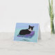 Graphic illustration of Tuxedo the Cat napping on throw pillows. Customise this card with your personal message for any special occasion.