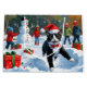 A playful Tuxedo Cat runs through the snowy winter scene, wearing a festive red Christmas hat. This charming design highlights the breed’s distinctive black and white coat, curious nature, and lively spirit while capturing the warmth and joy of the holiday season. A delightful winter moment full of festive cheer.