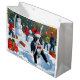 Tuxedo Cat Running in Snow with Christmas Hat Large Gift Bag