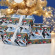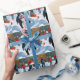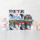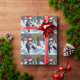 Tuxedo Cat Running in Snow with Christmas Hat Wrapping Paper