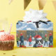 A playful Tuxedo Cat runs through the snowy winter scene, wearing a festive red Christmas hat. This charming design highlights the breed’s distinctive black and white coat, curious nature, and lively spirit while capturing the warmth and joy of the holiday season. A delightful winter moment full of festive cheer.