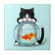 The tuxedo cat gazed longingly at the fish. Classy design for kitty and fish fans.