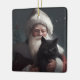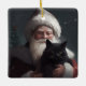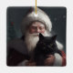 Tuxedo Cat With Santa Claus Festive Christmas Ceramic Ornament