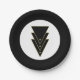 A chic and trendy geometric design featuring a trio of black triangles bordered in gold and surrounded by a black background. This plate is a great choice for weddings, black tie events, birthday parties, anniversaries, wine tastings, corporate events and so much more. It coordinates beautifully with the "Tuxedo Modern Art Deco" wedding collection.