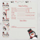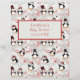 Have your baby shower guests fill out this cute baby predictions and advice card that features cute hand painted cartoon penguin illustration by OhMyStarling. This adorable Christmas penguin themed advice card makes for a wonderful keepsake and is a fun activity for your Christmas penguin themed baby shower! The back of this card features a repeating pattern of cute cartoon penguins, snowmen, snowflakes, red hearts, and candy canes. Great black and white and red colour scheme for winter penguin baby showers and parties.