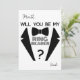Simple modern black and white ring bearer request card featuring a black tuxedo top with a bowtie. ++++++++++++++++ Easy to personalise on both sides!