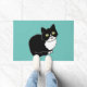 This design has a cute drawing of a tuxie, a black and white tuxedo pattern cat.