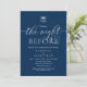 Modern Romantic Calligraphy, navy blue Scheme, mistletoe with wedding bells, Wedding Rehearsal Dinner invitation card (with card title: the night before). It is perfect for your wedding rehearsal dinner celebration party, before your best day. Add your details in matching black font / lettering.