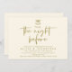 Modern Romantic Calligraphy, yellow gold Scheme, mistletoe with wedding bells, Wedding Rehearsal Dinner invitation card ('Twas the night before). It is perfect for your wedding rehearsal dinner celebration party, before your best day.