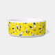 This is a heavy, durable bowl decorated with Tibbies of many colors, the perfect size for hungry/thirsty Tibs. The design is interesting and printing clear.