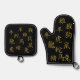 Twelve Chinese Zodiac Symbols in Gold on Black | Oven Mitt & Pot Holder Set