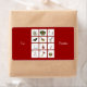 Each individual square of the red grid pattern on this adhesive gift label contains a colourful watercolor representation of each of the twelve days of Christmas with each day’s number in the upper left corner. From my original digitally created image.