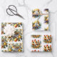 Three sheets of Christmas gift wrap. One with golden partridges in a pear tree, two turtle doves and three French Hens.