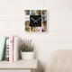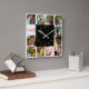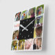 A wall clock with placeholders for 12 square photos around the clock image. Simply select each photo and replace them. Photos can be portrait or scenic images.