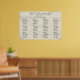 Barn wood look background, seating chart poster for seating up to twelve tables, with eight (or fewer) guests at each.  This 23 x 36 inch seating chart has black text in both script, for up to 12 table numbers, and printed text for guests' names.  Married names at top in elegant and modern, hand-written font with one or two lines for date and location of celebration  Tables are listed horizontally, but that is easy to change by changing the numbers using the templates.  For fewer tables, simply delete sections as needed, keeping the look symmetrical.  Upgrade the paper if you wish.