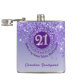 Twenty First & Purple Glitter & Drinking Quote Hip Flask