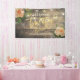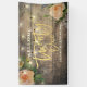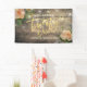 21st Birthday Party Decor Welcome Banner Templates - Faux Gold Foil Script with Peach White Roses Floral and String Lights on Rustic Wood Background.