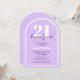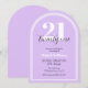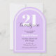 Twenty One Purple Black Arch Chic 21st Birthday Invitation features a purple background with a white multilined arch shape element, adding a modern and trendy touch. The big white number "21" is elegantly overlaid with black script "twenty one", while the personalised name in white font completes the elegant design. The black typography keeps the look minimal yet bold, making it a perfect choice for a milestone celebration.