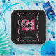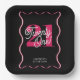Twenty One Retro Wavy Black Pink Birthday Paper Plate