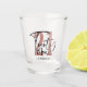 Rose Gold twenty one birthday shot glass. Trendy design features number 21 in rose gold colour and typography script twenty one in handwritten lettering. Personalise with a name. Perfect as a gift or to celebrate 21st birthday.