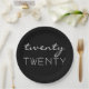 Twenty Twenty Happy New Year 2020 Black and White Paper Plate