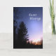 It's twillight. The luminous sky is a palette of indigo, blue, pink, yellow and red. Pine trees are silhouetted against the sunset colours. A tiny sliver of moon way up in the sky looks down on the scene. What a very special Easter card this will be!