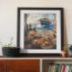 As the sun descends, casting a warm glow over the ocean, a group of fishermen busily work on the weathered deck of a sturdy boat, collecting and sorting crabs from the overflowing traps. The scent of the salty sea blends with the anticipation of a bountiful catch while seagulls circle above, hoping for a share of the fishermens spoils. Waves gently rock the vessel, accompanying the rhythmic motion of their labour. 1. This stunning painting captures a picturesque scene of crabs being sorted on a boat by a group of fishermen as the sun sets, creating a warm and inviting glow over the ocean. 2. The weathered deck of the boat adds a sense of authenticity to the scene, showcasing the hard work and dedication of the fishermen as they go about their tasks. 3. The presence of seagulls circling above adds a touch of realism to the painting, highlighting the constant battle between man and nature in the quest for a successful catch. 4. The gentle rocking of the waves and the rhythmic motion of the fishermen's labour create a sense of movement and life within the painting, drawing the viewer into the bustling atmosphere of a working fishing boat.
