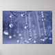 A 3D macro shot of a crystal chandelier. Myriads of strands of sparkling glass beads catch the light to create a lovely bokeh in the background. The blurred glass drops are reflected clearly in the sharply focused crystal balls in the foreground. The silver branches of the candelabra and soft blue atmosphere and lights give an early evening glow to the piece. Created in Vue.