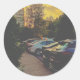 Capture the stillness of evening with this round customisable sticker featuring a softly lit city lane at twilight. Trees in silhouette, glowing rooftops, and a golden sky fading into dusk—this scene is a quiet invitation to pause. Its darker tones and moody composition bring emotional depth to every application, making it ideal for elegant product packaging, seasonal mailings, and atmospheric branding.
