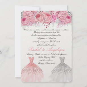 Ethnic Twins Ballerinas Eiffel Tower 1st Birthday Invitation