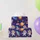 This fun design features a repeating pattern of twin astronauts floating in space surrounded by rocket ships, planets, a UFO, the sun and a lot of stars on a dark purple background. You can add your own photos into the helmets of the astronauts. This design is ideal for twin baby boy's first birthday 'my first trip around the sun' theme but can also be used for any other occassion. See the whole matching collection.