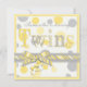 Twin Babies Yellow Grey Dots Baby Shower Invitation