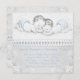 Adorable grey and blue twin boy baby shower invitations. Sweet baby blue boy twins with white lace overlay.