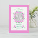 A fully customizable, pretty, pink, white and green New Twin Daughters Announcement Photo Card , with a border of pink and white flowers to surround the babies' photo, from a handpainted paper collage by Judy Adamson.