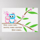 Accessorise your party room for the new babies with this adorable pink twin baby owl poster with mummy and daddy owl.