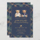 Featuring two watercolor teddy bears, rich navy plaid accents, and elegant gold-style typography, this design creates a refined preppy look ideal for a timeless birthday celebration.
