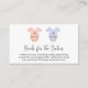 Cute books for baby enclosure card for a girl and boy twins baby shower featuring retro-inspired pastel pink and blue watercolors of baby one piece snapsuit outfits with "It's a Girl!" and "It's a Boy!" written across each (you can change these or leave blank). "Books for the Babies" is written in a stylish contemporary script and you can personalise the book request.