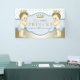 Twin boy baby shower banner with adorable vintage baby princes wearing baby blue diapers and gold crowns on a pretty blue and gold background. You can customise with the text ofyour choice and move the centre crown as needed.