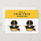 Creative football themed baby shower invites featuring boy twins and funny line.