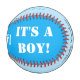 Baby boy twin announcement. Two-tone light and darker sky blue. Upload your baby image. Baby Name is written in black script. Personalise Baby Name and Birth Stats. Twin Number is written in red text against light blue background. Left side reads, Welcome Sweet Baby Boy. #1 It's a Boy is written in white text against sky blue background. Original Photography and Design © TamiraZDesigns.