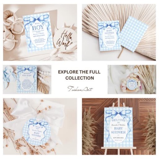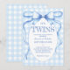 Twin Boys Blue Bow Vintage Cute Invitation