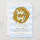 TWIN BOYS Blue & Gold Foil Watercolor Invitation