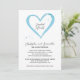 Elegant, simple, twin boys baby shower invitation featuring oil painting light blue brush strokes forming a beautiful heart on elegant white background. You can read the phrase "bonded hearts" in a modern calligraphy.